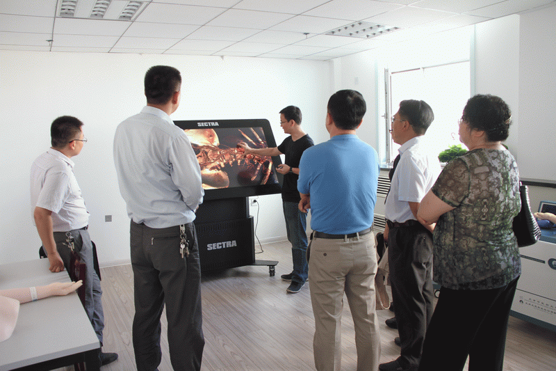 目前,该中心已引进内科、外科、妇产科、儿科、五官科、急救、综合共7个实训室,133套培训设备,包括SECTRA三维解剖、影像、手术辅助教学系统、临床思维综合训练系统和高仿真智能生理模拟人等。“模拟人雅典娜”,秉承了CAE生理驱动、无线智控等核心技术,是一款具有生理驱动功能的高仿真标准模拟人,会根据基础疾病及对药物和临床治疗措施的感知产生一系列自主的类似真人的生理和药理反应。她可以模拟生理反应,如睁眼、体温、呼吸等,也可模拟不同种类的多种药物治疗反应,主要用于急救综合技能的训练。实时3D重建解剖、影像及手术辅助教学系统可利用真实病例中的CT或核磁数据重建成逼真的三维影像,使用者可以通过互动方式,借助虚拟的切割,分解和剥离等操作,逐层逐步地观察骨骼系统、肌肉系统、各个器官、软组织和其他解剖结构。