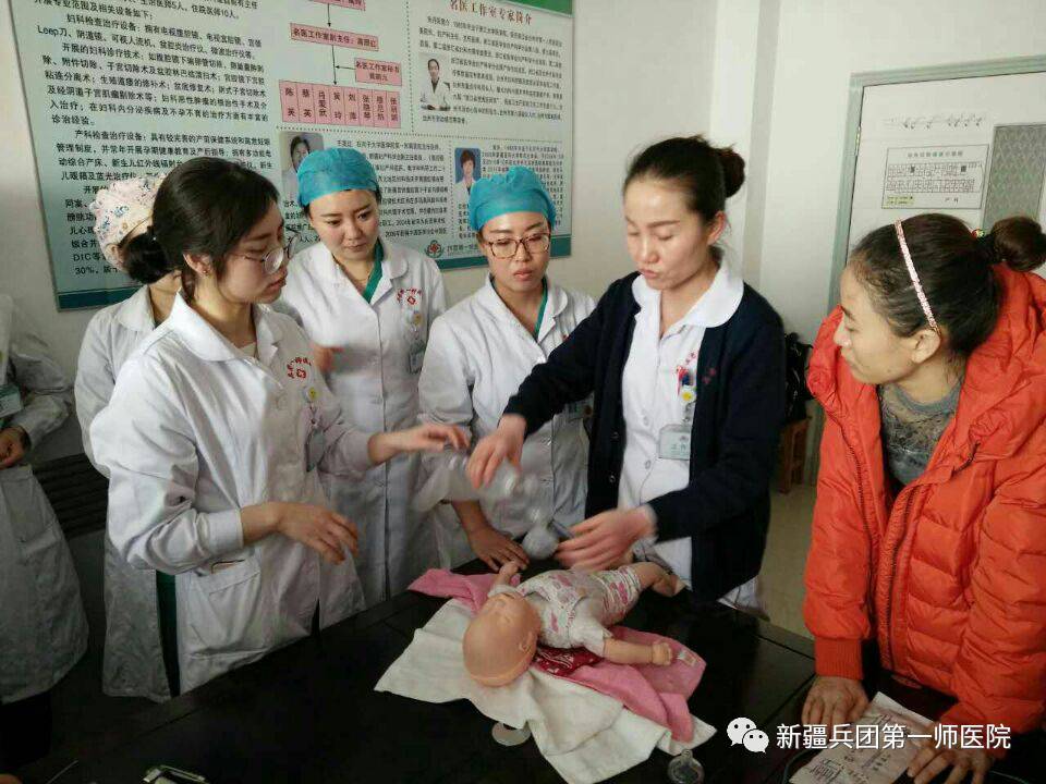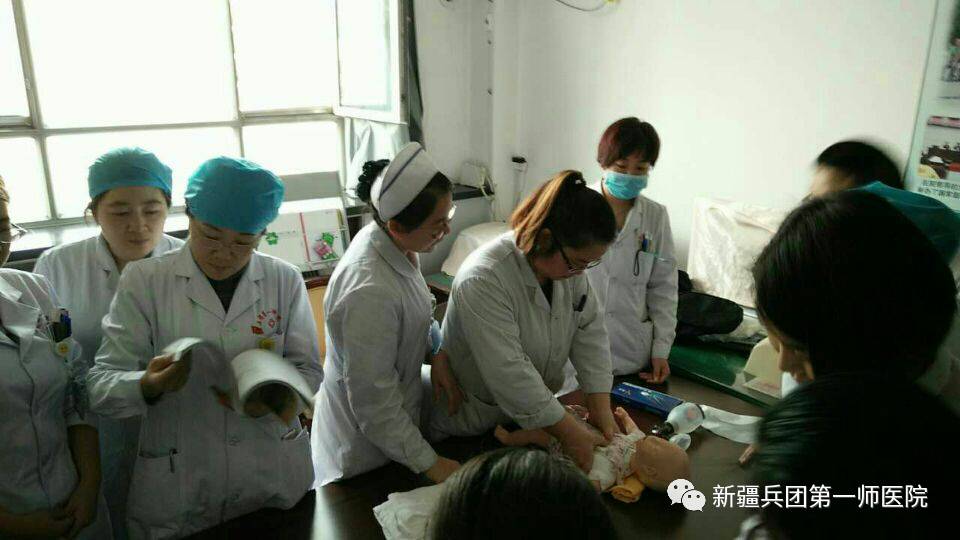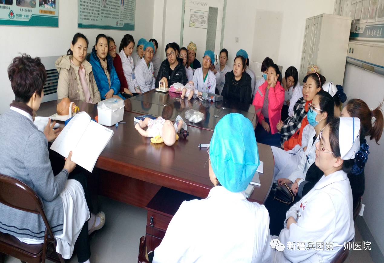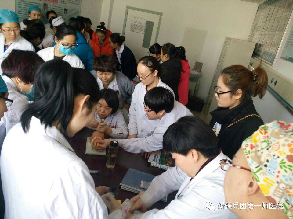 “ 1月26日,在春节放假的前一天,第一师医院妇产科一病区主任高玲在晨会上对大家说:“在新春佳节来临之际,祝全科的姐妹们新年快乐,工作顺利,万事如意!我们在不断的学习和辛勤工作中度过了难忘的2016年,今天,我们也要以学习的形式为一年的努力画上一个圆满的句号。下面,我有一份新年礼物要送给大家,那就是上午和下午的两项业务培训,请春节仍要奋战在一线的姐妹们,要保持高度的责任心,将母婴平安时刻牢记在心间!” 会后,随着高主任的一声令下,全科医护人员迅速集结在八楼医生办公室,开始了全天的业务培训工作。高主任由浅入深、重点突出、系统地给大家讲解了产妇出血管理方面的知识。特别是对如何准确评估出血和早期识别羊水栓塞及处理方面作了详细的解析,使大家受益匪浅。为了检验培训效果,高主任根据授课内容,现场出题,如:产后出血,新生儿低血糖,新生儿黄疸,新生儿窒息复苏等常用理论和操作知识,大家一气呵成,奋笔疾书,在短短的 20分钟便全部交卷。 ”
